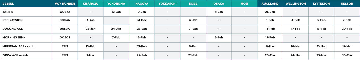 Moana Blue aims to provide an accurate and up-to-date Roll-on-Roll-off (RORO) Shipping designed to help you plan for your vehicle imports! Gain instant access to detailed departure and arrival times, vessel names, ports of call, and crucial shipment updates.