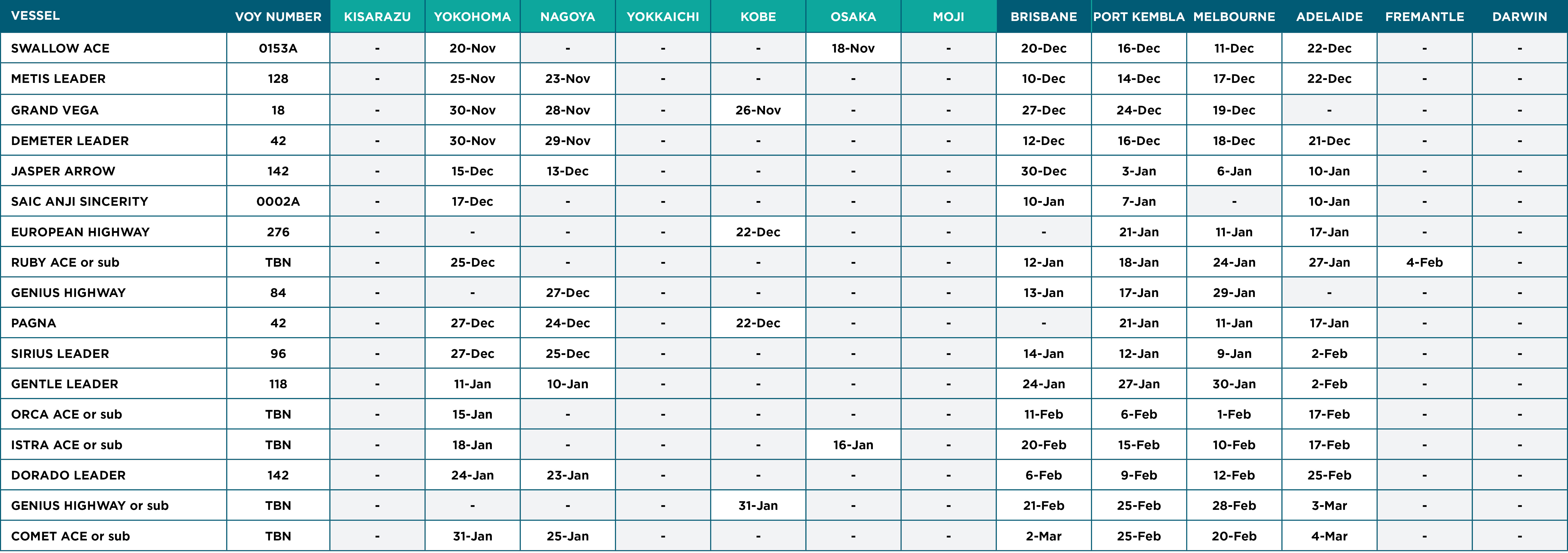 Moana Blue aims to provide an accurate and up-to-date Roll-on-Roll-off (RORO) Shipping designed to help you plan for your vehicle imports! Gain instant access to detailed departure and arrival times, vessel names, ports of call, and crucial shipment updates.