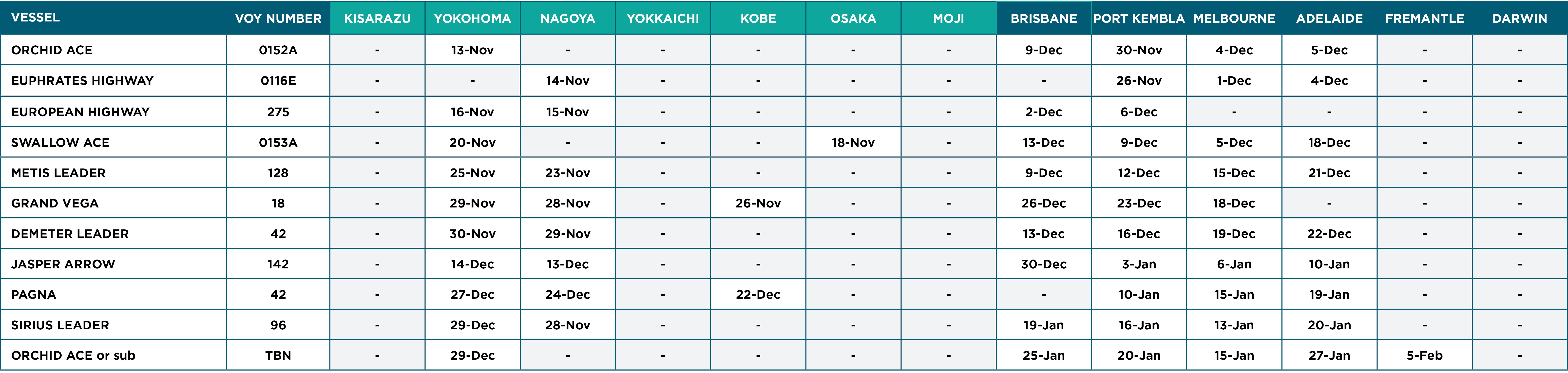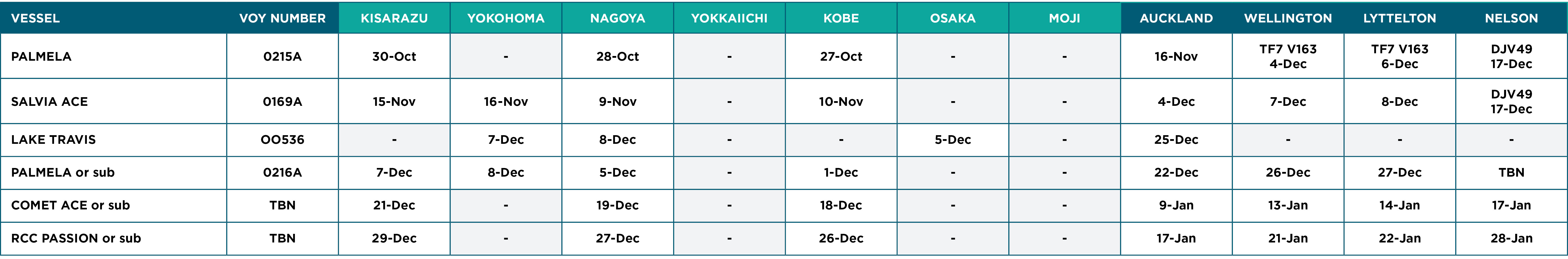 - Schedules are updated when we receive shipping updates from shipping lines.